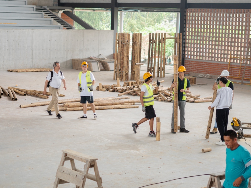 El workshop aplica la metodología “aprender haciendo”, que permite a los estudiantes adquirir conocimientos técnicos a través de la experiencia directa. Durante una semana, los participantes diseñan y construyen una estructura de descanso sobre una plataforma de hormigón, utilizando bambú como principal material constructivo.