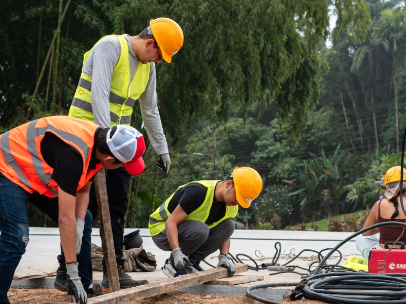 La actividad involucra a 15 estudiantes y siete docentes de la carrera de Arquitectura de la PUCE en Santo Domingo quienes cursan las asignaturas de Diseño Arquitectónico y Urbano y Construcciones. El proyecto se lleva a cabo en un área de 150 metros cuadrados del Bambusario de la sede.