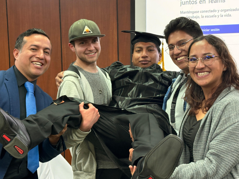 A lo largo de los semestres, Jefferson también encontró un espacio de compañerismo y vínculos sólidos. “En los últimos niveles pude contar con compañeros que se han vuelto mis amigos. No me sentía lejos”. También destaca a docentes que marcaron su camino, quienes mostraron sensibilidad y compromiso.