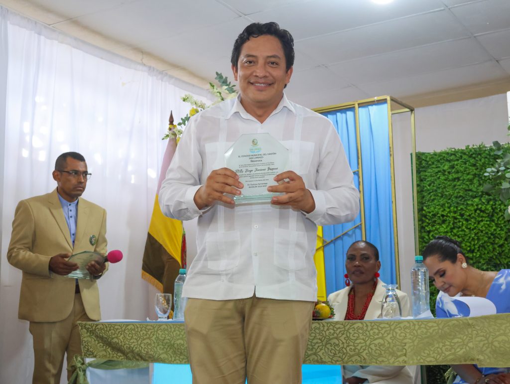 Finalmente, la Alcaldía del cantón San Lorenzo realizó la entrega de un nuevo reconocimiento al mérito educativo. La entrega estuvo a cargo del alcalde, el doctor Gustavo Samaniego Ochoa, durante la sesión solemne por los 47 años de cantonización de San Lorenzo.