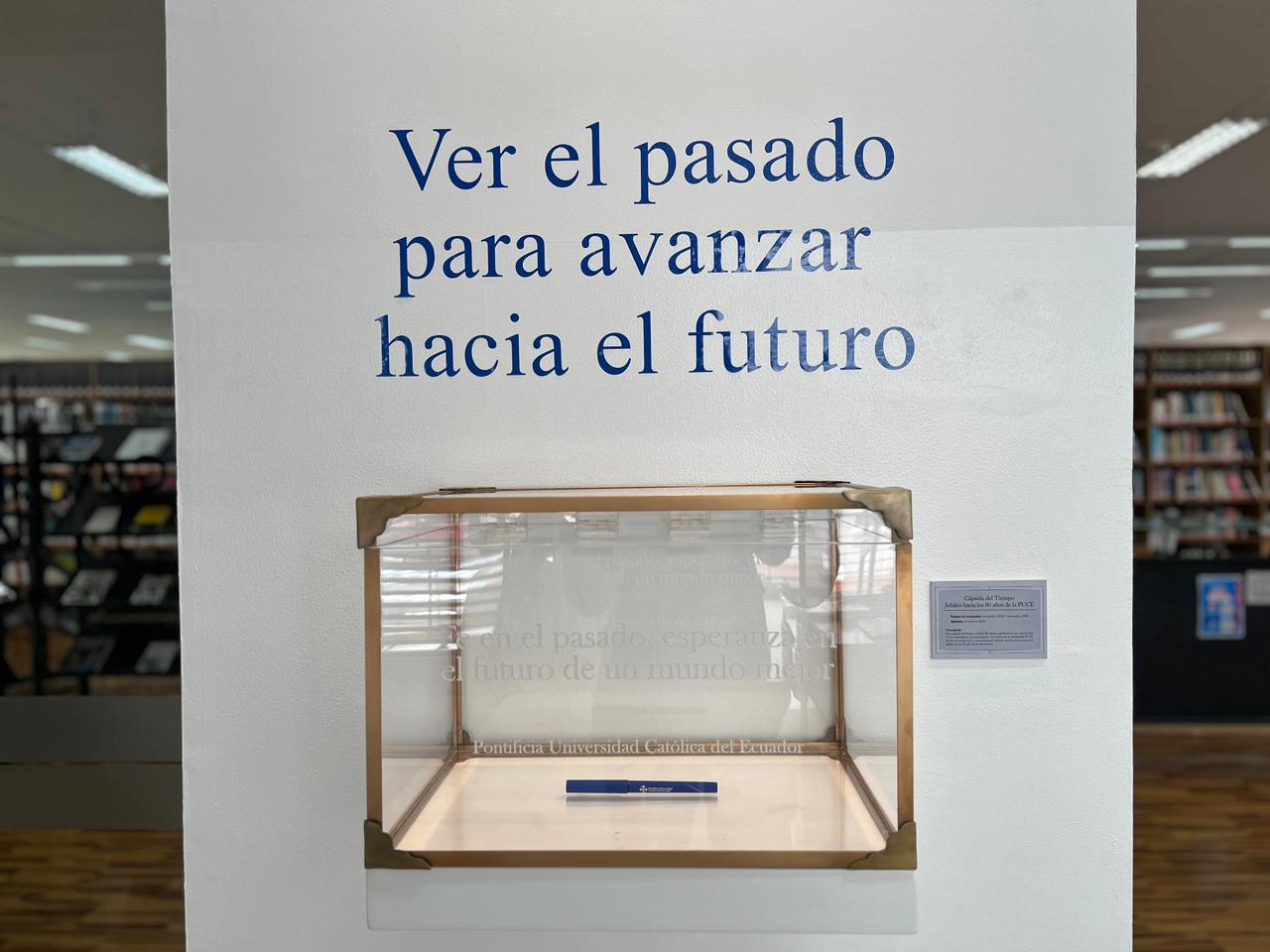 Durante la celebración del aniversario se presentó la Cápsula del Tiempo, símbolo central del jubileo. Es el emblema de la fe, la memoria y la esperanza que sostienen a la PUCE.