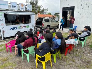 El PUCE STEAM es un laboratorio móvil creado por la Pontificia Universidad Católica del Ecuador (PUCE). Este espacio científico lleva el mundo de las ciencias aplicadas y las artes a los niños y jóvenes del país.