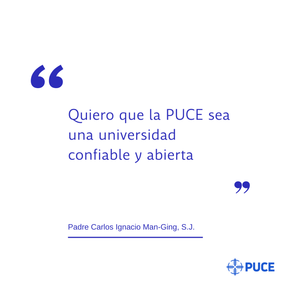 Si Dios me concede vida y salud, me gustaría que la PUCE sea plenamente lo que está llamada a ser por su propio nombre: una Pontificia Universidad Católica del Ecuador. Profundamente inculturada en la realidad nacional, capaz de afrontar los desafíos que hemos mencionado y abierta a la creatividad para servir de manera efectiva a las poblaciones más vulneradas.