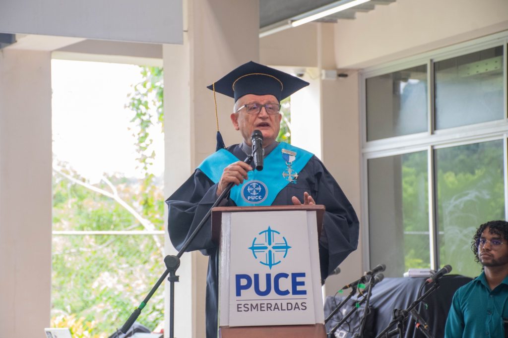 Además, destacó la labor de la PUCE Esmeraldas por formar profesionales con sensibilidad social y compromiso con la realidad de la provincia. “La universidad está llamada a relacionarse con los pueblos y sus luchas, porque solo así se forma un profesional íntegro”, afirmó.